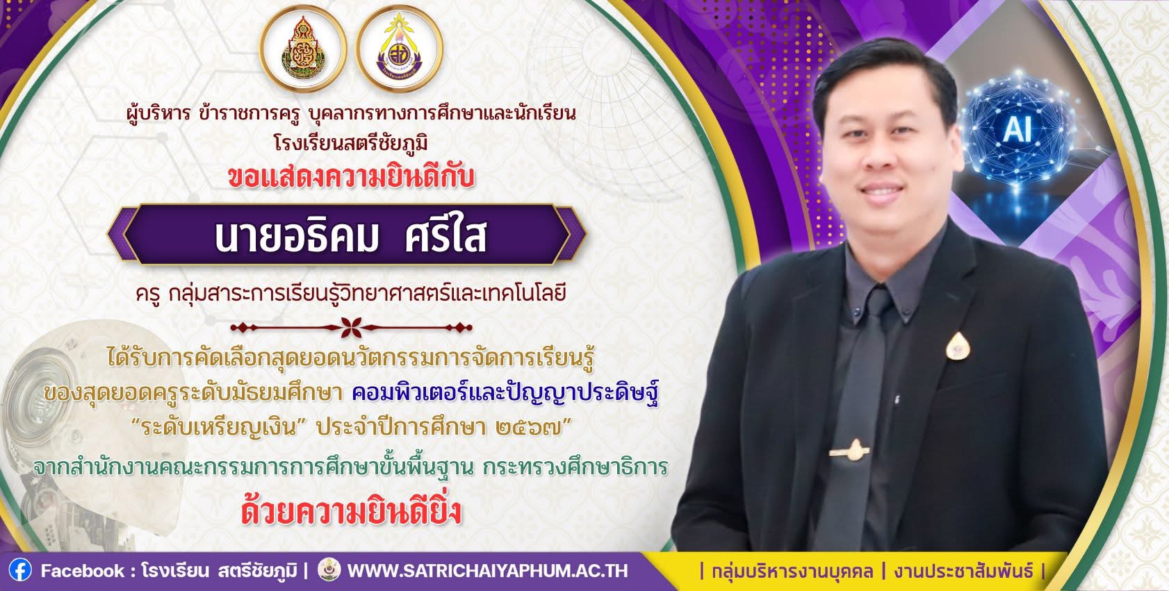 หมายเลขโทรศัพท์ :  0810634301 อีเมล์ :  vlardtepez@gmail.com หรือ athikom@satrichaiyaphum.ac.th